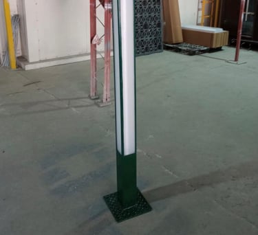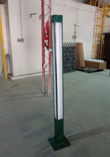 Postes metálicos en diferentes medidas y versiones: cónicos circulares, hexagonales, octagonales, cuadrados, rectos circulares, postes tipo cerrillo y bolardos.